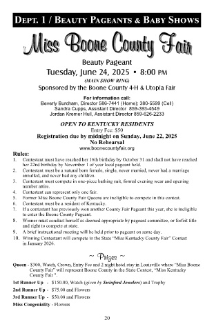 5. Former Miss Boone County Fair Queens are ineligible to compete in this contest.