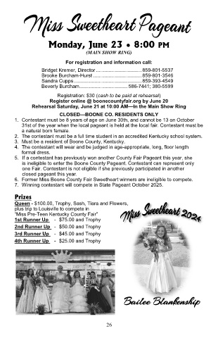 6. Former Miss Boone County Fair Sweetheart winners are ineligible to compete.