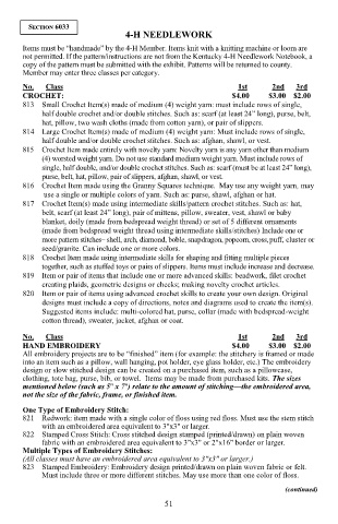 Items must be “handmade” by the 4-H Member. Items knit with a knitting machine or loom are