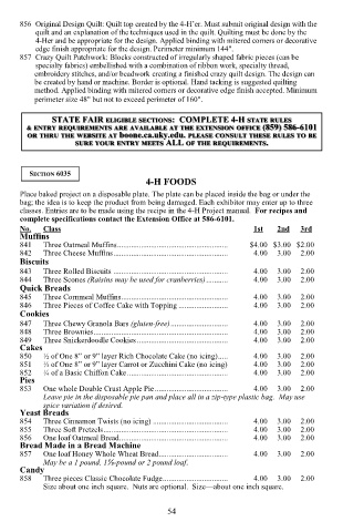 classes. Entries are to be made using the recipe in the 4-H Project manual. For recipes and